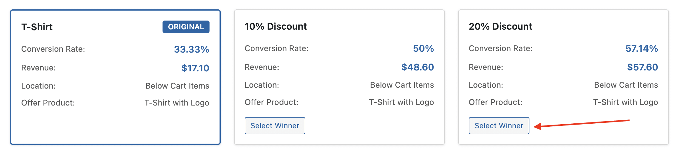 - After updating, in the variants grid, click Select as Winner on the variant that performed best.